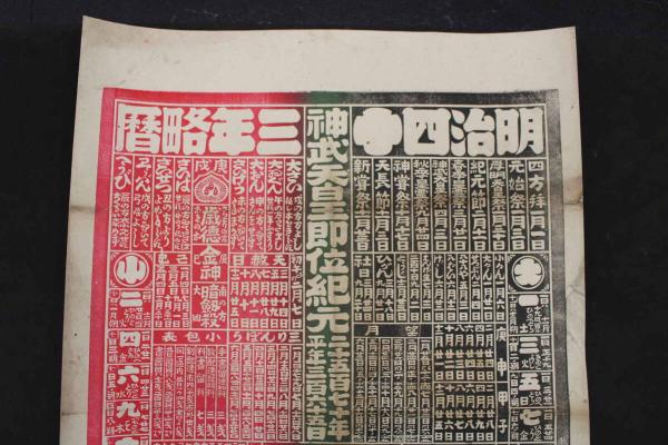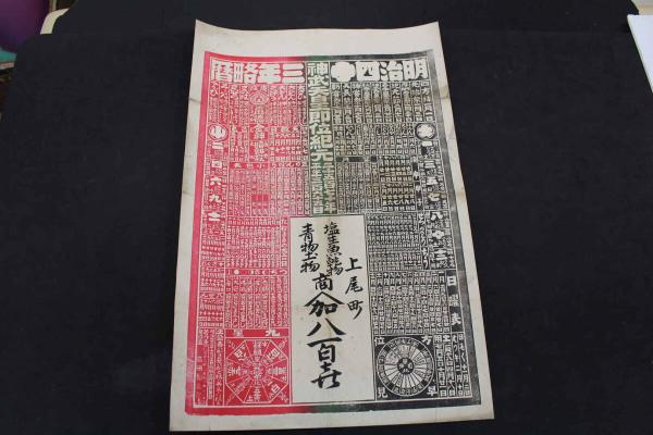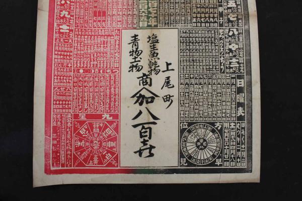 5 5 引札 略暦 明治40年 塩生魚乾物 青物土物 上尾町 八百喜 石版3色刷 約54×35.5㎝