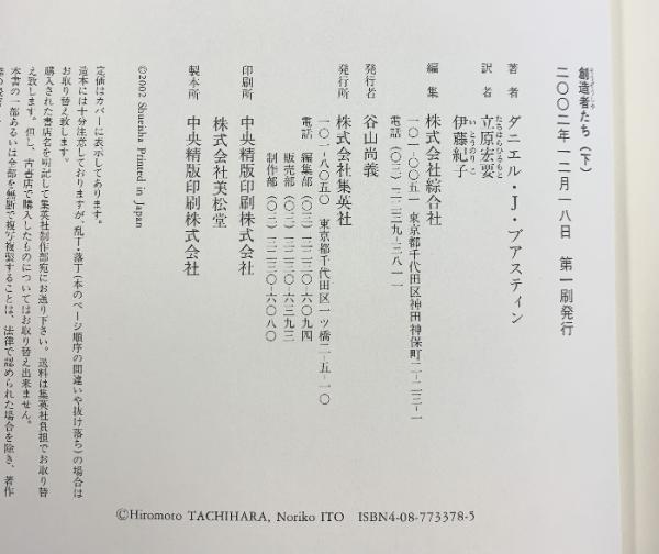 創造者たち(下) 芸術の誕生 (創造者たち) 集英社 ダニエル・J・ブアスティン