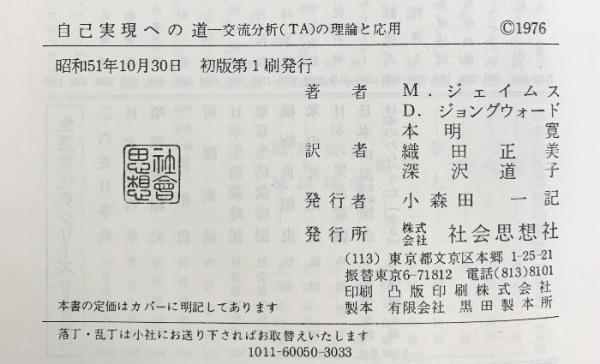 自己実現への道: 交流分析(TA)の理論と応用 社会思想社 ミュリエル ジェイムズ