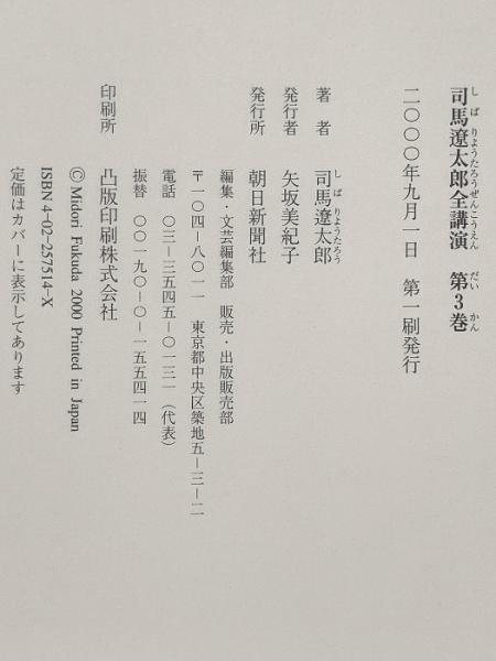 司馬遼太郎全講演 第3巻 1990-1995 朝日新聞出版 司馬 遼太郎