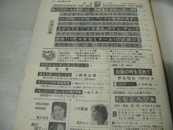 平凡パンチ NO.521 1974年08月05日号 多岐川裕美 表紙 青木英美・巻頭グラビア+ピンナップ 高村ルナ 芹明香 シェリー 落合恵子(記事) ※画像の様に巻頭頁上隅に折れ跡出ています。