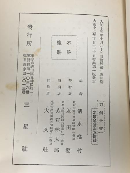 刀劒全書 清水橘村編 大正15年発行三星社 清水橘村