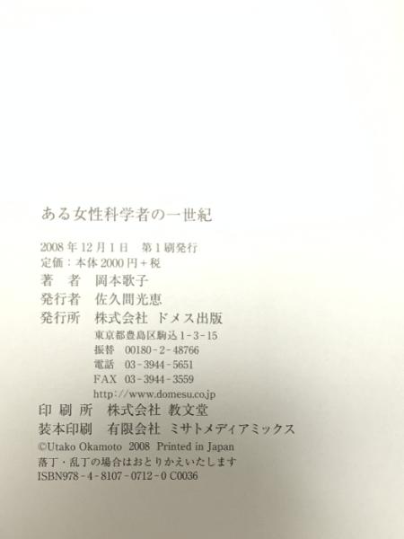 ある女性科学者の一世紀 ドメス出版 岡本 歌子