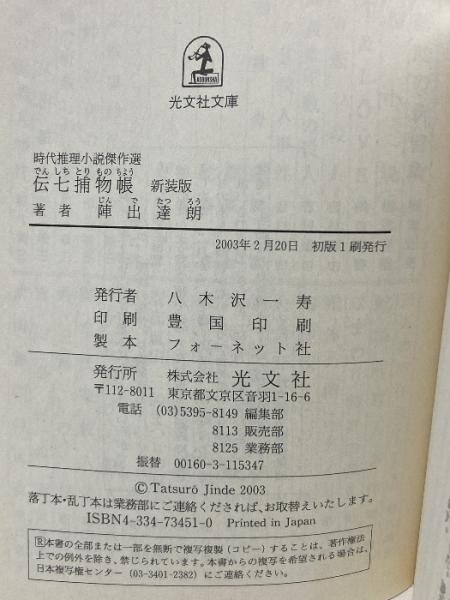 伝七捕物帳 新装版 時代推理小説傑作選 (し 8-2 光文社時代小説文庫) 光文社 陣出 達朗