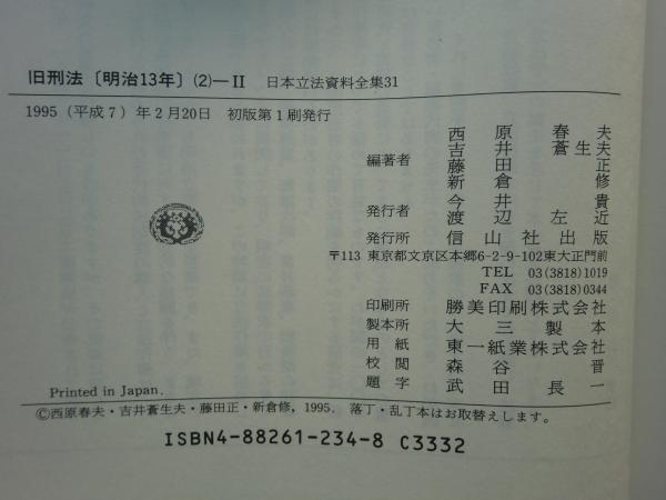 旧刑法[明治13年](1)(2)-Ⅰ・Ⅱ 日本立法資料全集29・30・31 計3冊