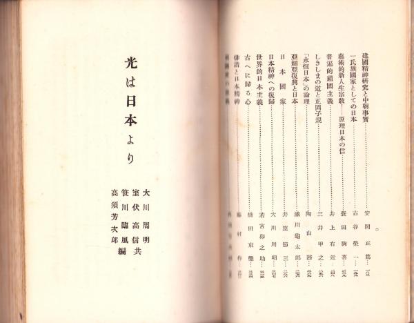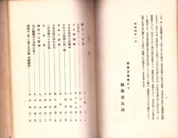 • 著者 大川周明、室伏高信、笹川臨風、高須芳次郎・共編、〈著者 野口米次郎、北昤吉、川路龍虹、里見岸雄、安岡正篤、三井右近、陶山務、藤村作ほか〉