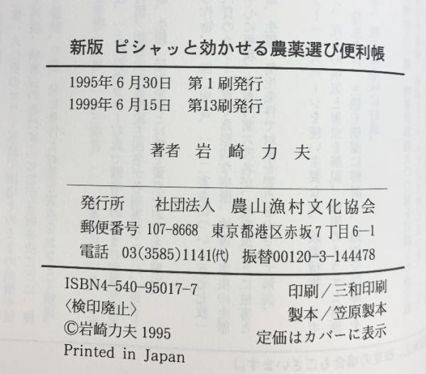 ピシャッと効かせる農薬選び便利帳 農山漁村文化協会 岩崎 力夫