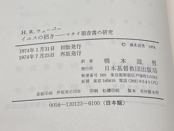 イエスの招き マタイ福音書の研究 H・R・ウェーバー著 橋本滋男訳 日本基督教団出版局