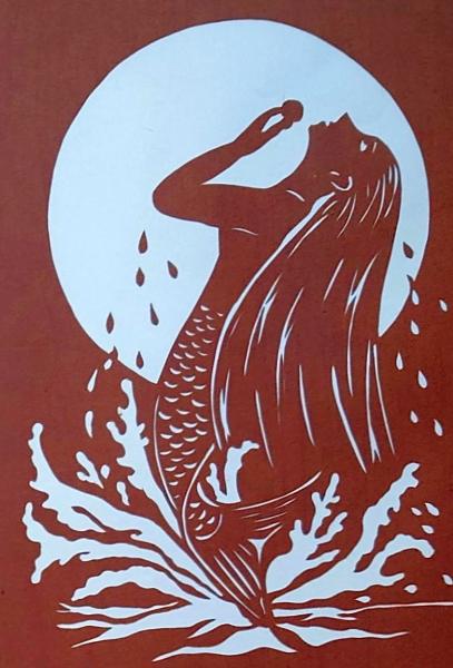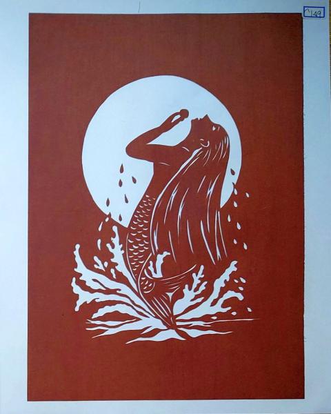 • 解説 D26020149〇伊勢型紙 手彫り 人魚姫 マーメイド 月 アート 伝統和紙工芸 貼り絵 切り絵 昭和レトロ インテリア〇和本古書古文書
