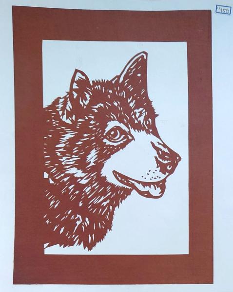 D26020150〇伊勢型紙 手彫り 犬 イヌ アート 伝統和紙工芸 貼り絵 切り絵 昭和レトロ インテリア〇和本古書古文書