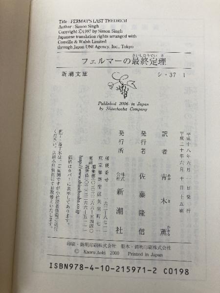 フェルマーの最終定理 新潮社 サイモン シン
