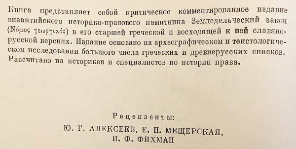 【ロシア語・現代ギリシア語洋書】 ビザンツ帝国の農民法 (ノモス・ゲオルギコス) 『Византийский земледельческий закон』