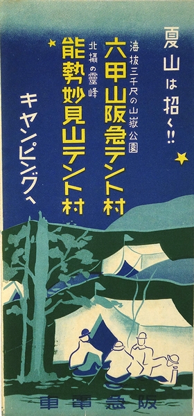 • 解説 六甲山阪急テント村、六甲登山順路、阪急沿線の幕営好適地、能勢妙見山テント村一泊券付・夏のハイキング、他。