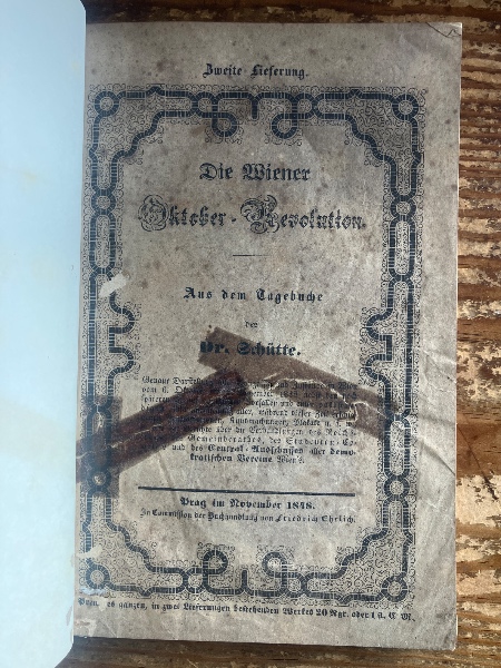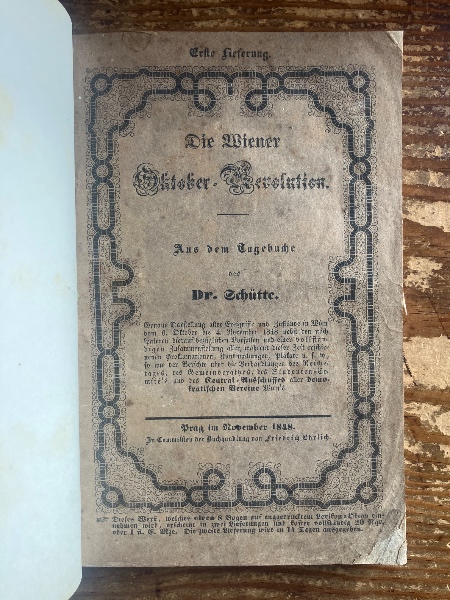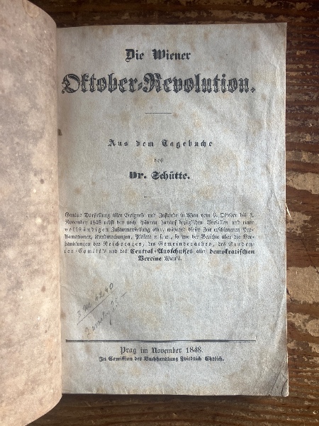 (独)ウィーン10月革命(ウィーン十月蜂起)(アントン・)シュッテ博士の日記より 1848年プラハ刊行 全2冊 Die Wiener Oktober=Revolution. Aus dem Tagebuche des Dr. Schutte. Genaue Darstellung aller Ereignisse und Zustände in Wien vom 6. Oktober bis 4. November 1848 nebst den noch späteren hierauf bezüglichen Vorfällen und einer vollständigen Zusammenstellung aller, während dieser Zeit erschienenen Proklamationen, Kundmachungen, Plakate u.s.w., so wie der Berichte über die Verhandlungen des Reichstages, des Gemeinderathes, des Studenten-Comité's und des Central-Ausschusses aller demokratischen Vereine Wien's.