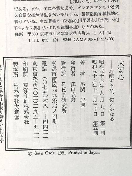 大安心: 心配するな、何とかなる PHP研究所 尾関 宗園