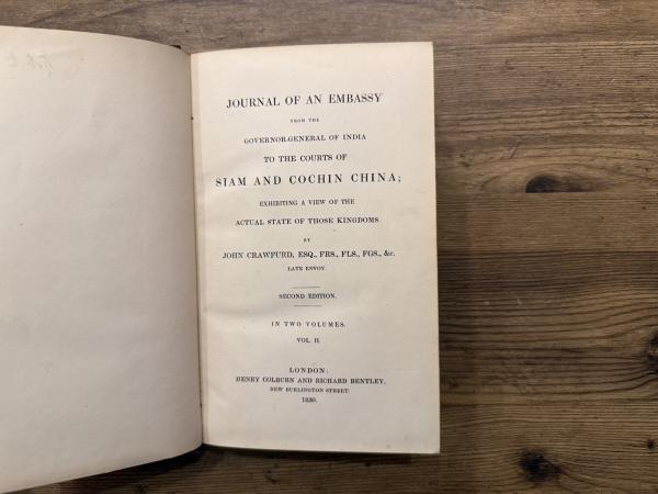 JOURNAL OF AN EMBASSY FROM THE GOVERNOR-GENERAL OF INDIA TO THE COURTS OF SIAM AND COCHIN CHINA; EXHIBITING A VIEW OF THE ACTUAL STATE OF THOSE KINGDOMS. SECOND EDITION IN TWO VOLUMES