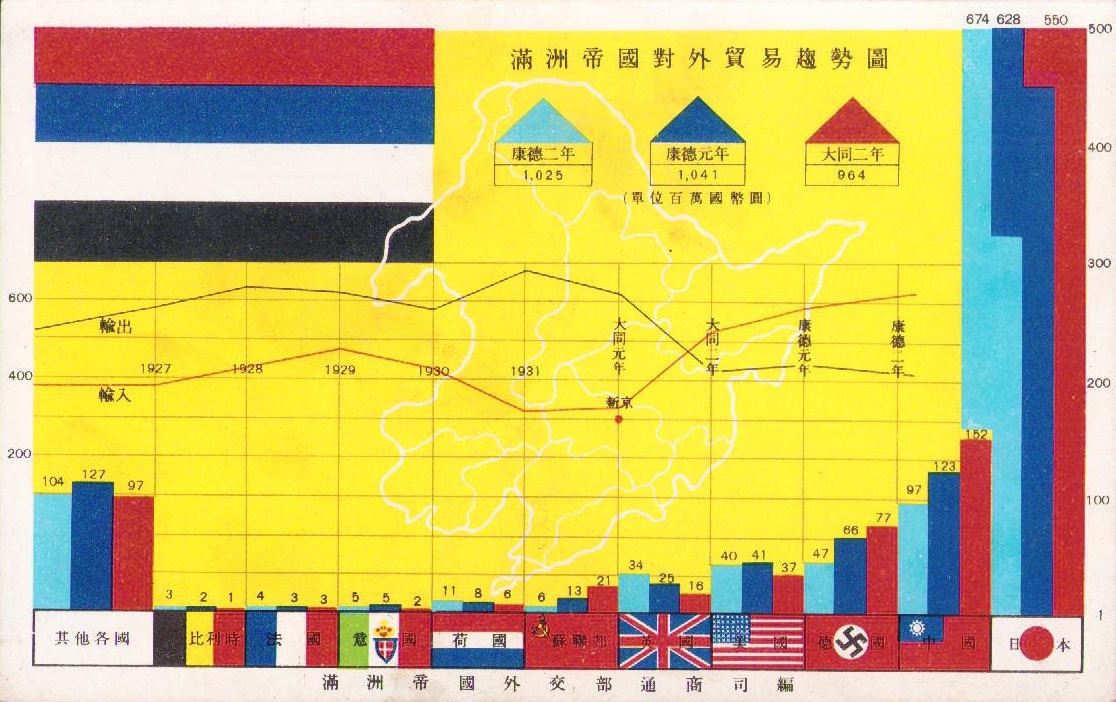 (絵葉書)満洲帝国対外貿易趨勢図 1枚(中国)