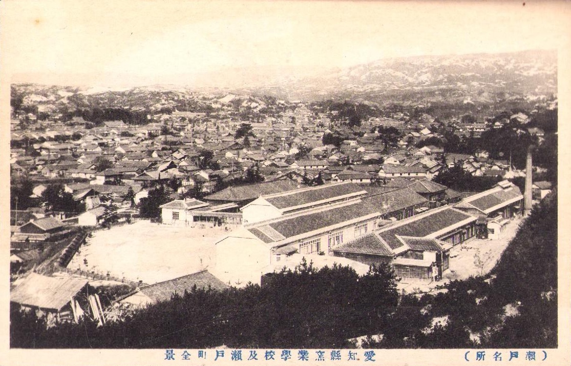 (絵葉書)愛知県窯業学校及瀬戸町全景 -瀬戸名所- 1枚(愛知県)