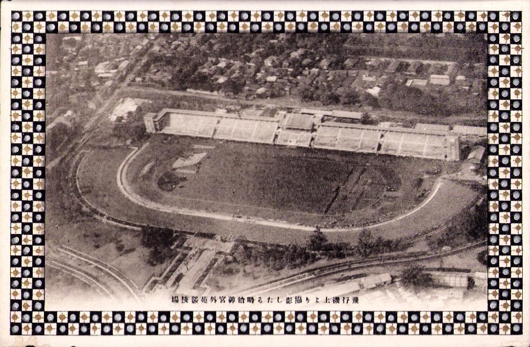 (絵葉書)飛行機上より撮影したる明治神宮外苑競技場 1枚(東京)