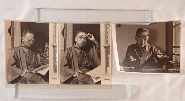 昭和期 古写真3枚セット|和装の男性ポートレート|作業風景・眼鏡姿|大判モノクロ