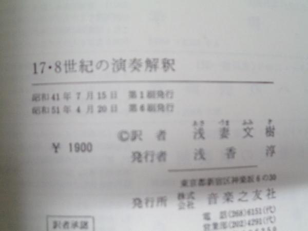The interpretation of the music of the XVII & XVIII centuries, revealed by contemporary evidence 十七・八世紀の演奏解釈