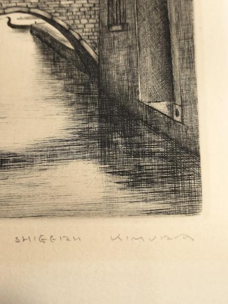 • 解説 マットの形に薄くヤケあり。紙サイズ 28.5x25㎝ 水路のある風景(ベネチア?)