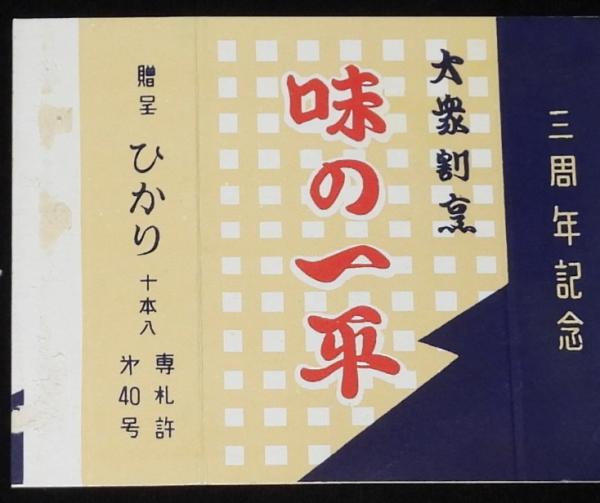 「大衆割烹 味の一平 三周年記念/贈呈 ひかり十本入/専札許第40号」