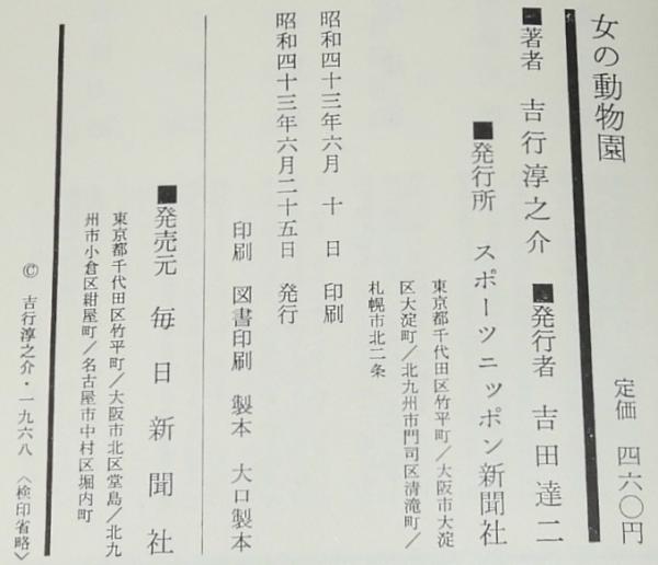 • 解説 吉行淳之介 女の動物園 スポーツニッポン新聞社 昭和43年6月発行 B6判帯付.
