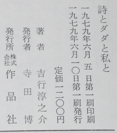 • 解説 吉行淳之介 詩とダダと私と 作品社 1979年6月第1刷 四六判ハードカバー帯付.