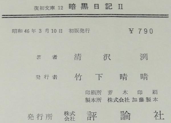 • 解説 復初文庫12 暗黒日記 II 清沢洌 評論社 昭和46年3月初版 四六判ハードカバー帯付.