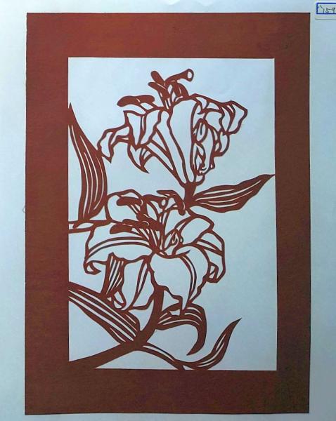 • 解説 D26020159〇伊勢型紙 手彫り ユリ 百合 アート 伝統和紙工芸 貼り絵 切り絵 昭和レトロ インテリア〇和本古書古文書