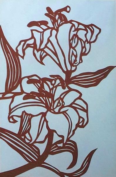 伊勢型紙 手彫り ユリ 百合 アート 伝統和紙工芸 貼り絵 切り絵 昭和レトロ インテリア〇和本古書古文書