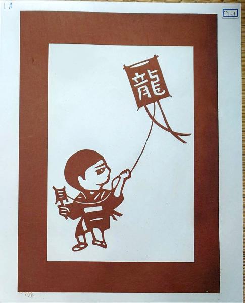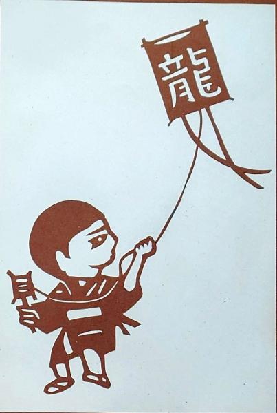 伊勢型紙 手彫り 1月 凧揚げ 戦前昭和世代子供の年中行事 アート 伝統和紙工芸 貼り絵 切り絵 昭和レトロ インテリア〇和本古書古文書