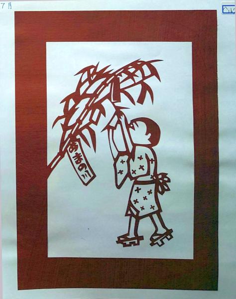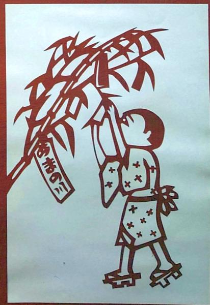 D26020167〇伊勢型紙 手彫り 7月 七夕 戦前昭和世代子供の年中行事 アート 伝統和紙工芸 貼り絵 切り絵 昭和レトロ インテリア〇和本古書古文書