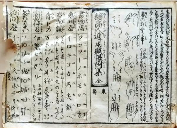 一枚刷り 和紙木版 江戸自慢 諸商人通用ふちょう 書物店 魚問屋 ことば遊び しゃれ なぞ 判じ絵 見立番付 江戸末期〇和本古書古文書