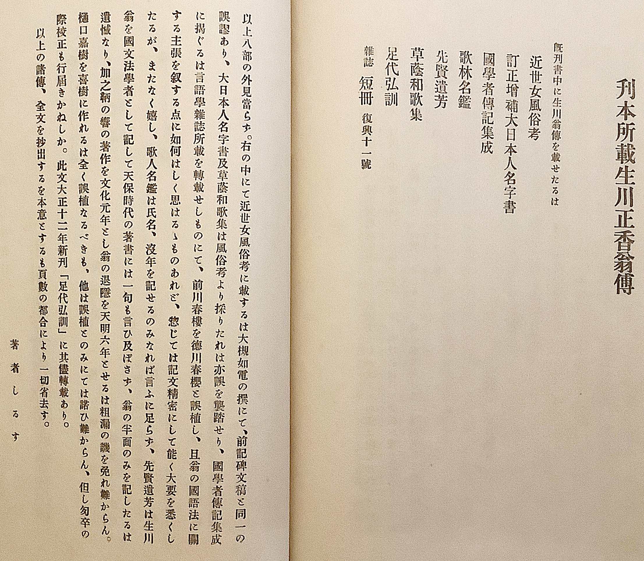 【和装本 / 非売品】 生川正香翁略伝 大正15 ●国学者・生川春明