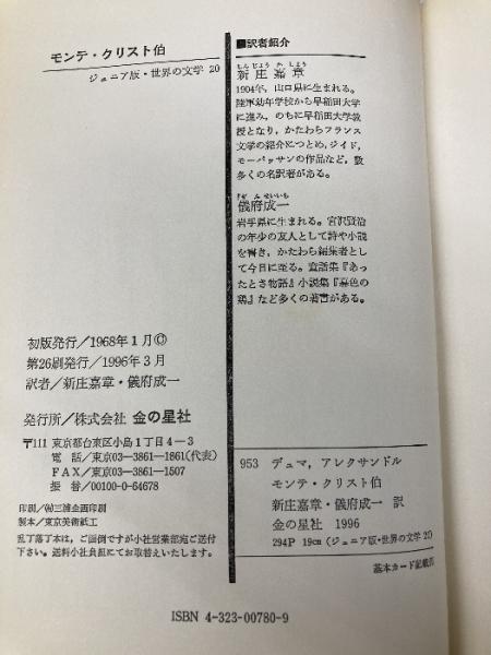 モンテ・クリスト伯 (ジュニア版・世界の文学 20) 金の星社 デュマ