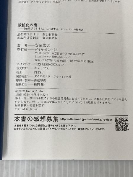 【※カバー無し】数値化の鬼 ── 「仕事ができる人」に共通する、たった1つの思考法 ダイヤモンド社 安藤広大