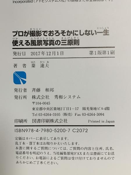 プロが撮影でおろそかにしない一生使える風景写真の三原則 秀和システム 秦 達夫