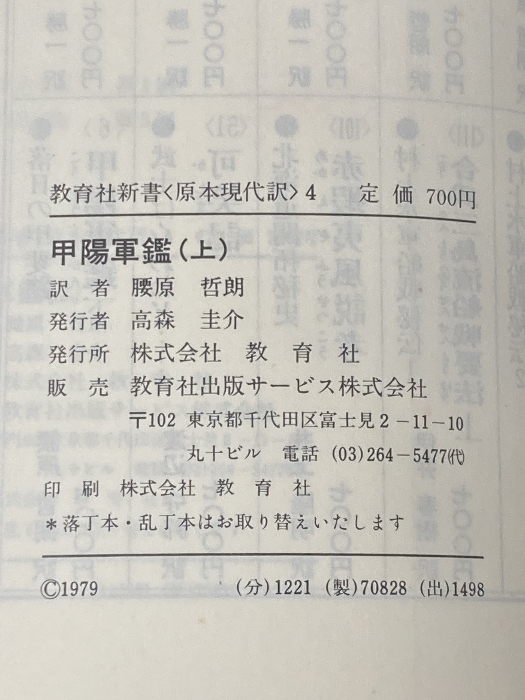 ※イタミ有 甲陽軍鑑 (1979年) (教育社新書―原本現代訳〈4~6〉)