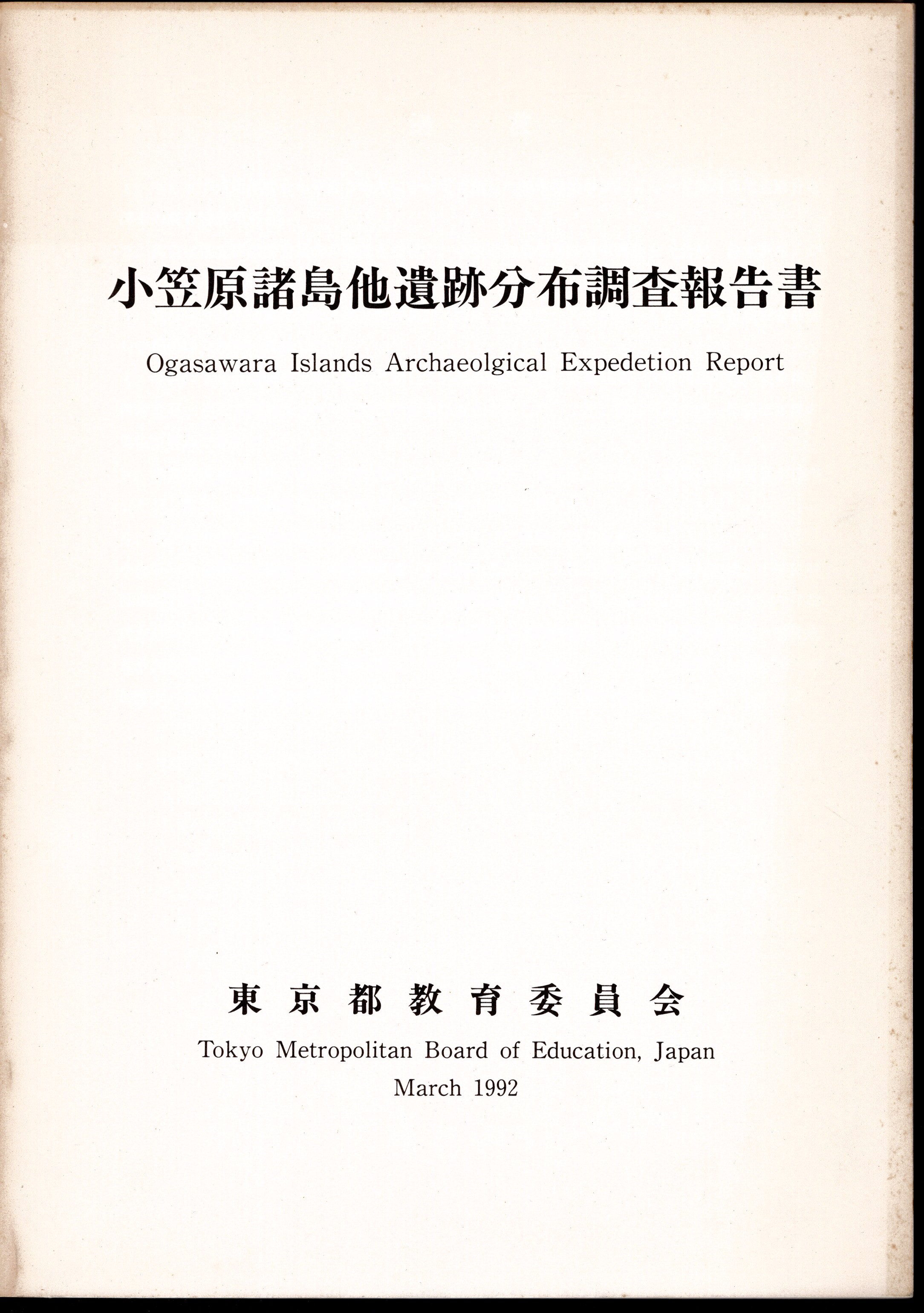 Ogasawara Islands Archaeological Expedetion Report / Tokyo Metropolitan Board of Education, Japan