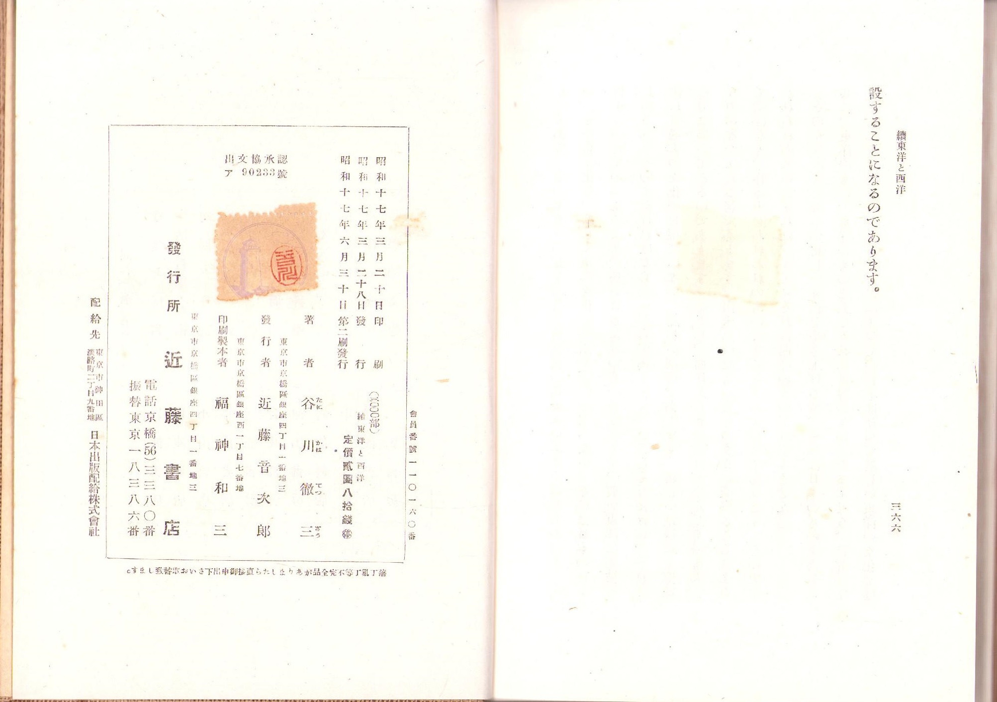 • 解説 第2刷、函、366頁、天と小口に経年しみ、函背に経年しみ