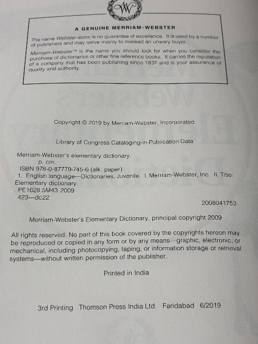 Merriam-Webster's Elementary Dictionary Merriam Webster Merriam-Webster