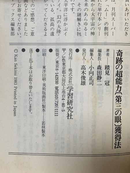 奇跡の超能力「第三の眼」獲得法―透視・予知・願望実現能力がつく驚異の超常能力開発システム 学研 蹟見 冠
