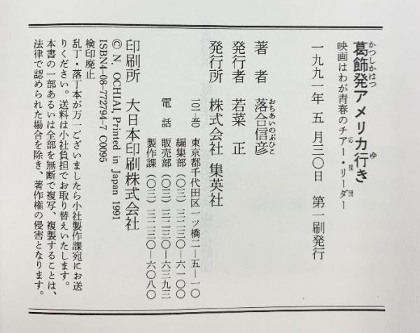 葛飾発アメリカ行き: 映画はわが青春のチアー・リーダー 集英社 落合 信彦