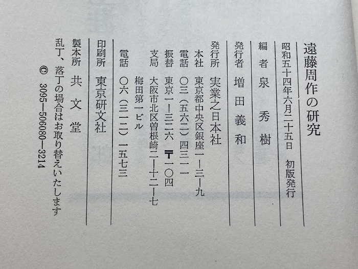 遠藤周作の研究  実業之日本社