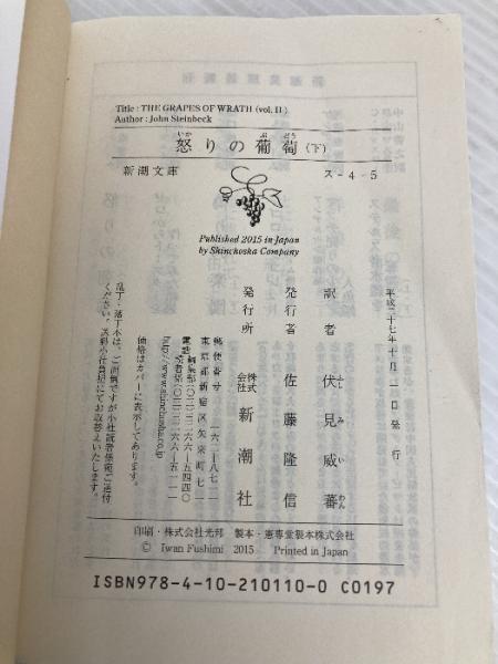 怒りの葡萄(下) (新潮文庫) 新潮社 ジョン スタインベック