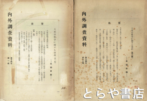 内外調査資料 14年1輯・12輯 大東亜戦争に関する資料1編・2編