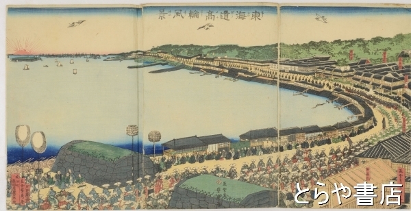 東海道高輪風景 貞秀画 3枚続