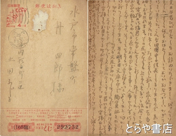 土田ふじ子(ふじ)葉書 山村暮鳥夫人